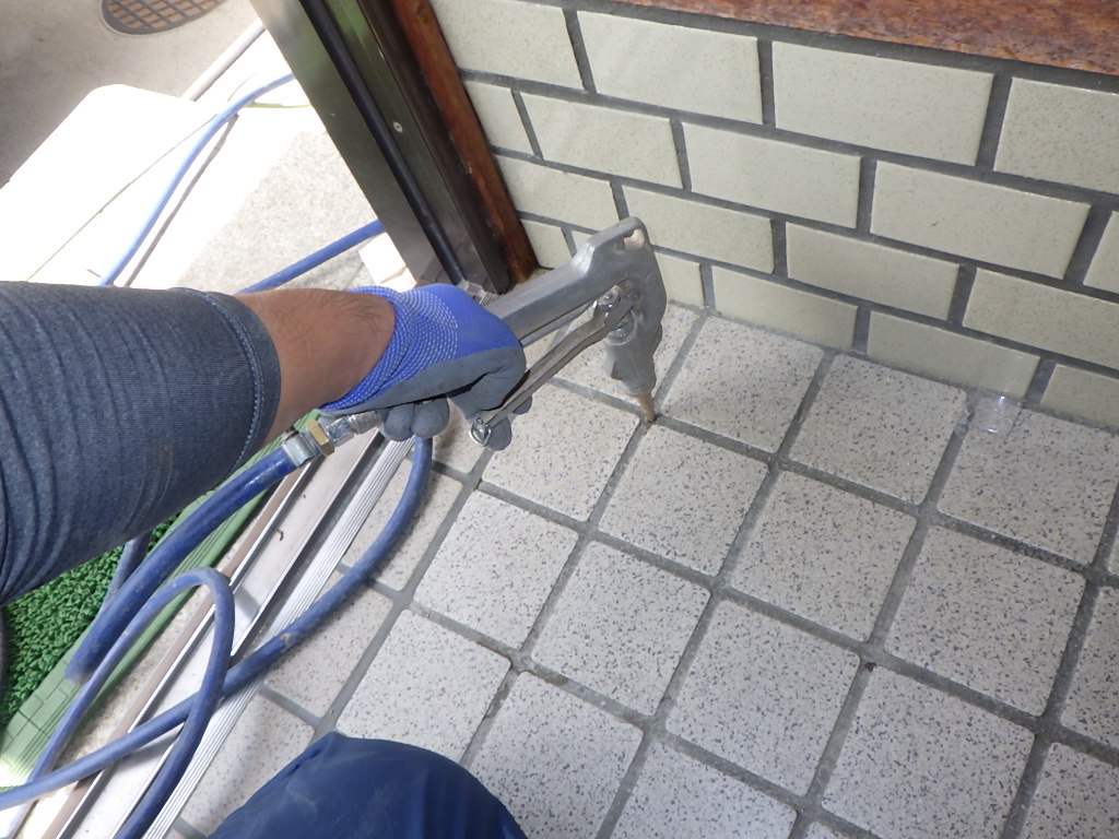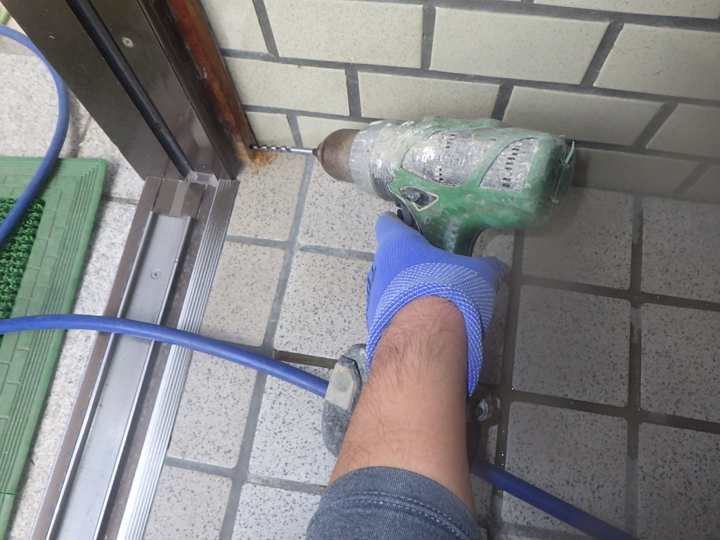 土間に穴を開けて薬剤をしっかり注入