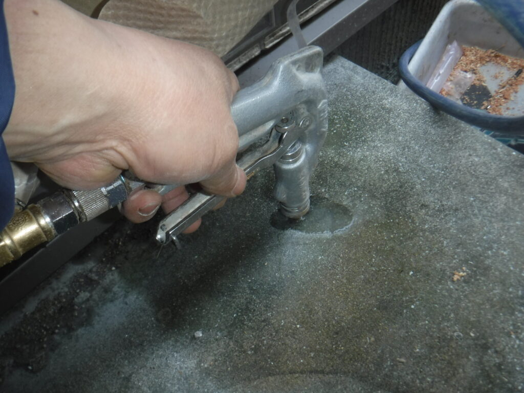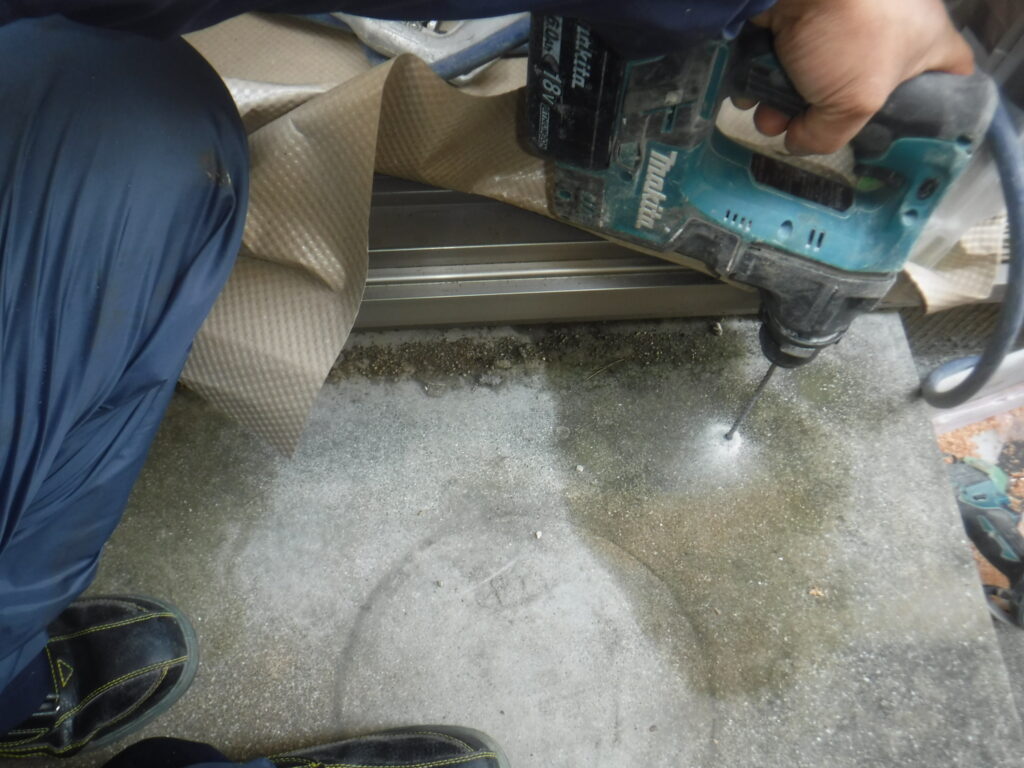 勝手口は被害を受けやすい場所。土間に穴を開けて薬剤を注入