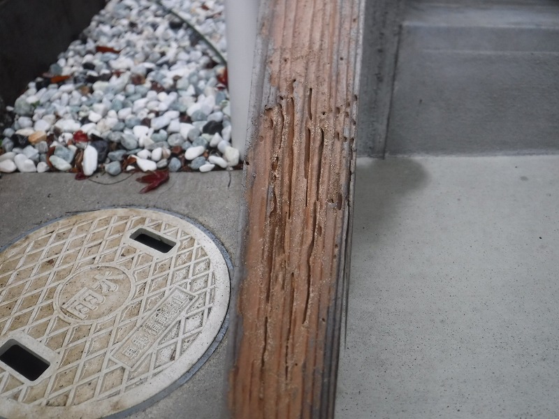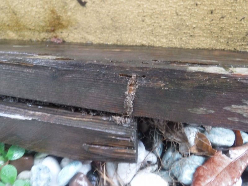しかし、外周に放置されていた木材にシロアリの食害と生息を確認。