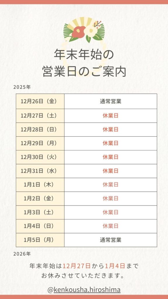 【シロアリ駆除隊 広島】年末年始の営業日のお知らせ